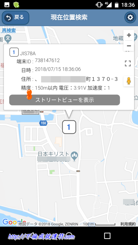 (さらに詳細設定で5分間隔おきに、位置情報をGoogle-maps上に表示させる事も可能です。)
