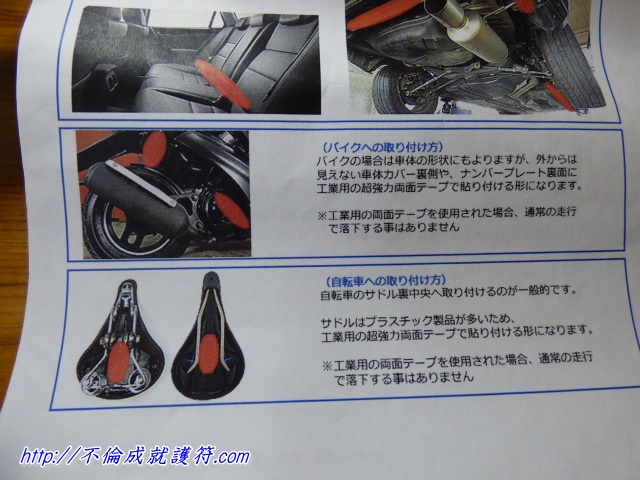 ※ただし精密機器なので、マフラーや、マフラー側近くの金具に貼り付けるのは絶対に厳禁です!