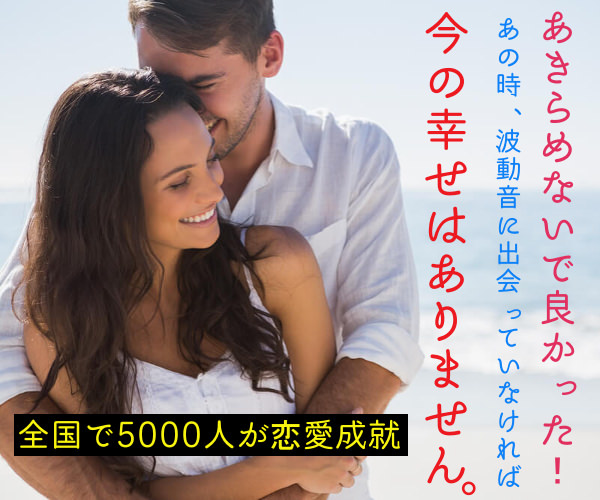 波動音を聴くだけで不倫成就が叶って、今では彼と幸せな日々をおくっています。